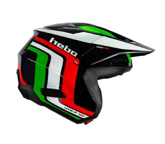 CASCO TRIAL HEBO HTR F02 ZONE PRO. Marca: HEBO. Color: NEGRO con lineas rojas, blancas y verdes